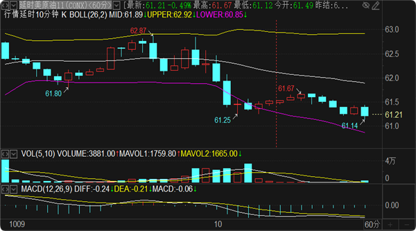 原油策略:实时现报价61.2一线 ,做空策略临盘给出提示。